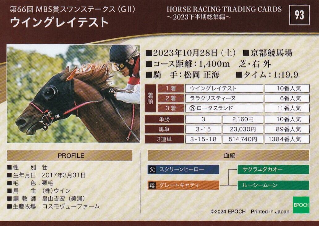 ウイングレイテスト:第66回 スワンステークス「ホースレーシング 2023年下半期総集編」No.93