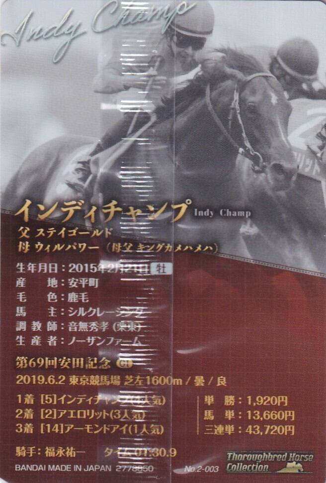 (金箔サイン付)インディチャンプ:第69回 安田記念「サラブレッドホースコレクション ツインウエハース 第2R」No.2-003