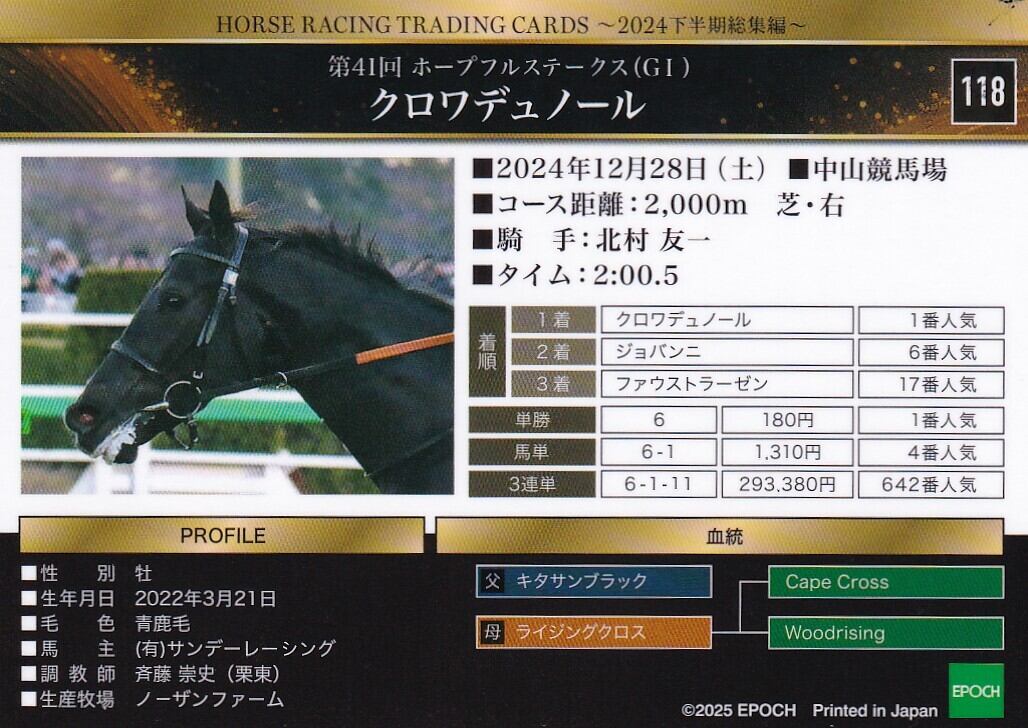 クロワデュノール:第41回 ホープフルステークス「ホースレーシング 2024年下半期総集編」No.118