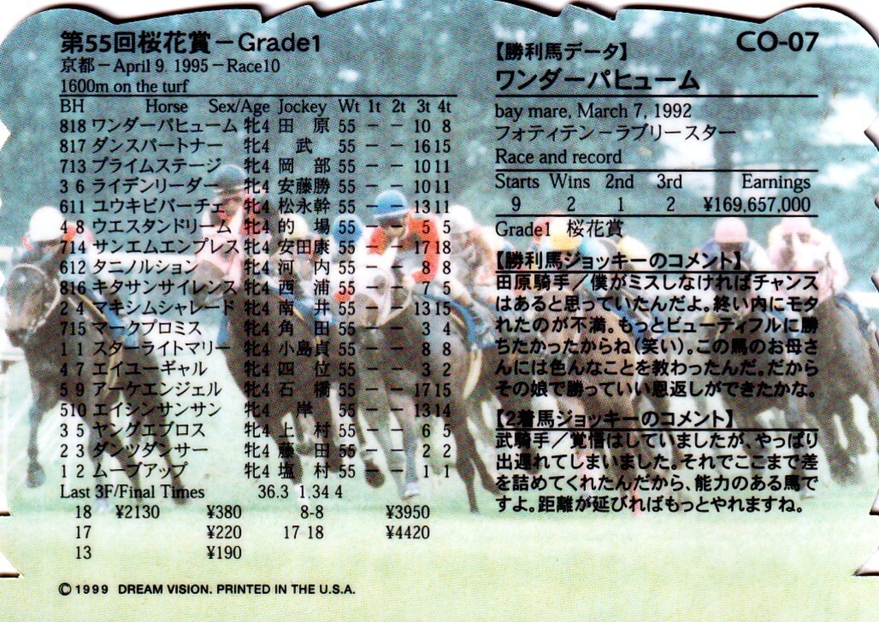第55回 桜花賞:ワンダーパヒューム(金文字ダイカット)「The Victory 1999」CO-07