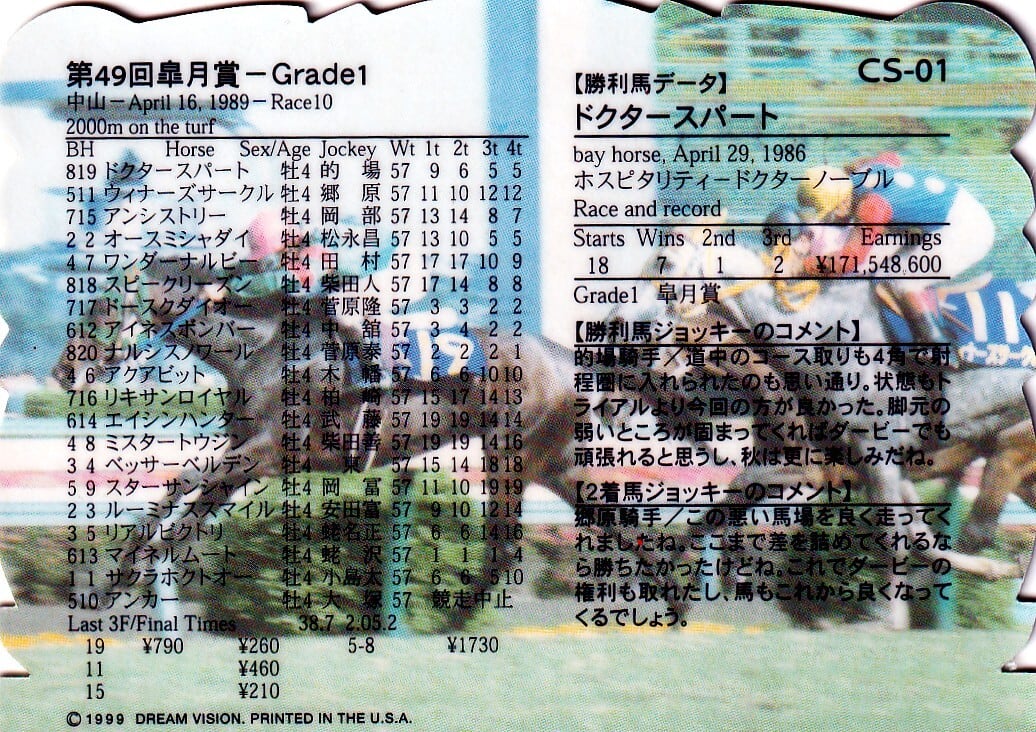 第49回 皐月賞:ドクタースパート(金文字ダイカット)「The Victory 1999」CS-01
