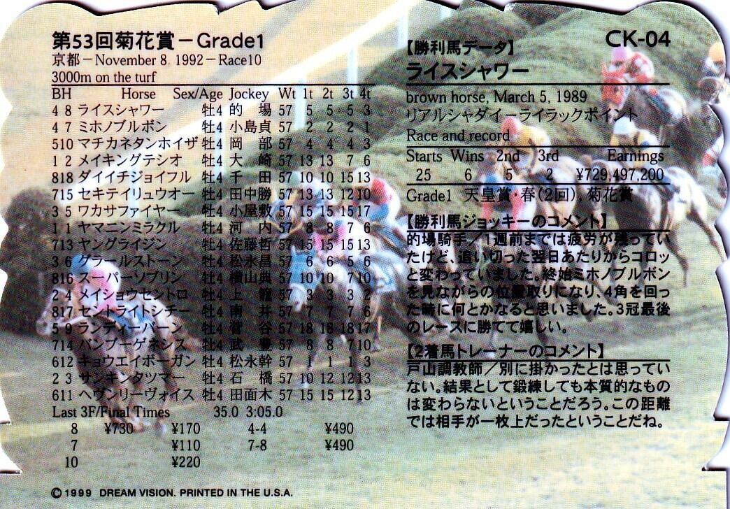 第53回 菊花賞:ライスシャワー(金文字ダイカット)「The Victory 1999」CK-04