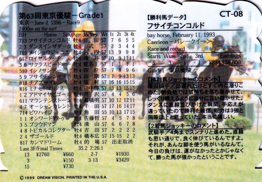 第63回 東京優駿:フサイチコンコルド(銀文字ダイカット)「The Victory 1999」CT-08