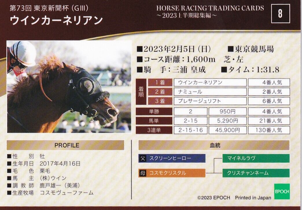 ウインカーネリアン:第73回 東京新聞杯「ホースレーシング 2023年上半期総集編」No.8