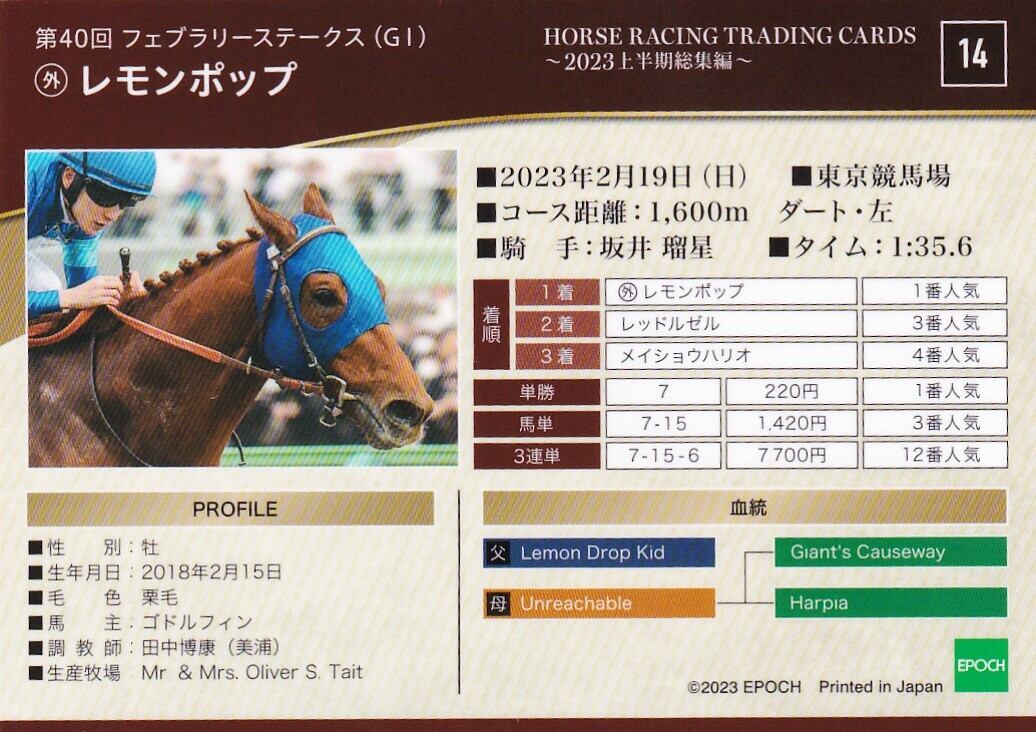 レモンポップ:第40回 フェブラリーステークス「ホースレーシング 2023年上半期総集編」No.14