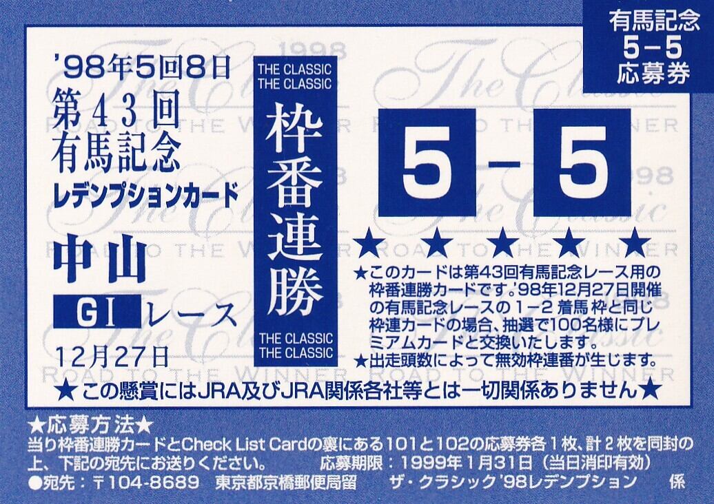 商品情報:The Classic 1998 Road To The Winner(有馬記念枠連応募券)