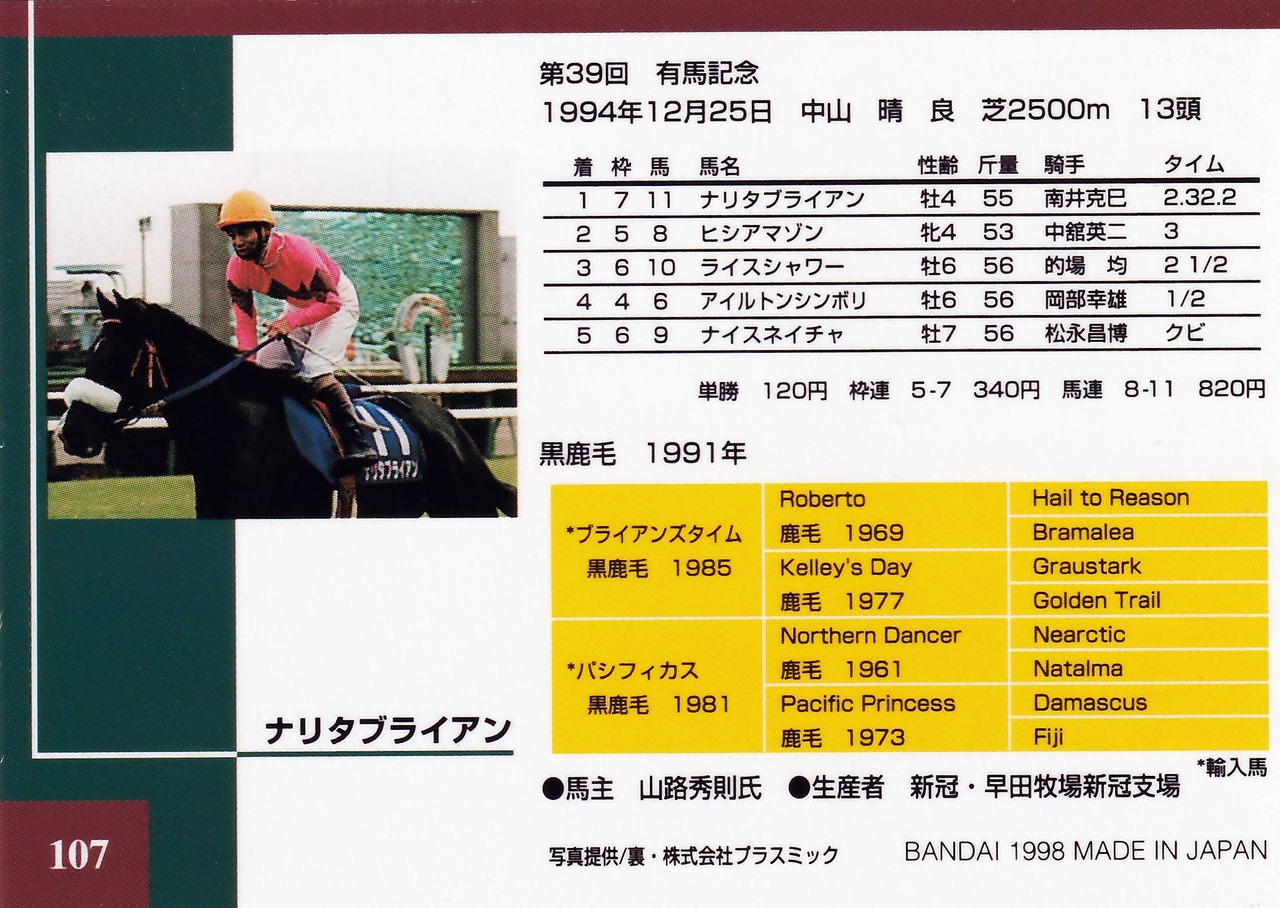 (ランクB)ナリタブライアン:第39回 有馬記念(ミラー仕様)「THE GRADE ONE」No.107