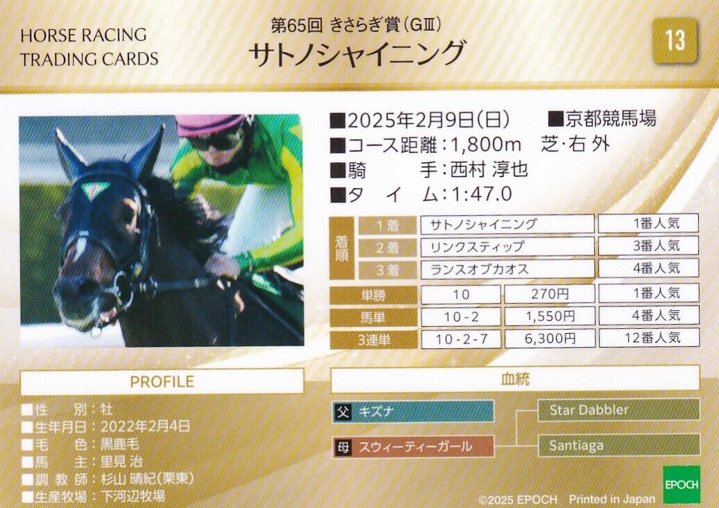 サトノシャイニング:第65回 きさらぎ賞「ホースレーシング 2025年上半期総集編」No.13