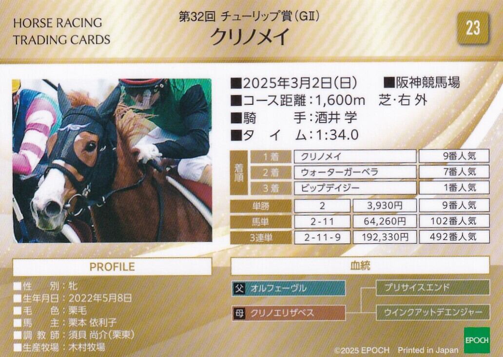 クリノメイ:第32回 チューリップ賞「ホースレーシング 2025年上半期総集編」No.23