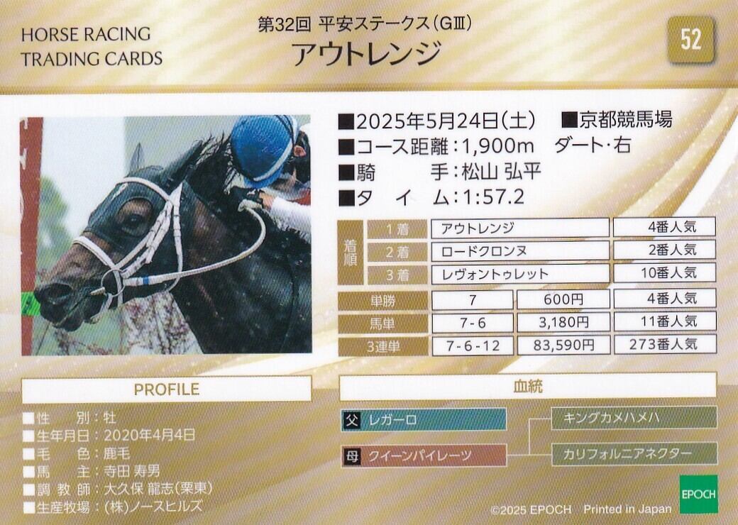 アウトレンジ:第32回 平安ステークス「ホースレーシング 2025年上半期総集編」No.52