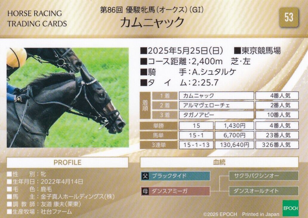 カムニャック:第86回 優駿牝馬(オークス)「ホースレーシング 2025年上半期総集編」No.53