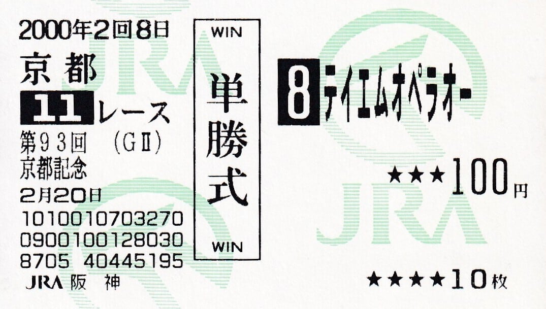 ※的中馬券 テイエムオペラオー:第93回 京都記念「他場 阪神競馬場 当日購入馬券」単勝100円