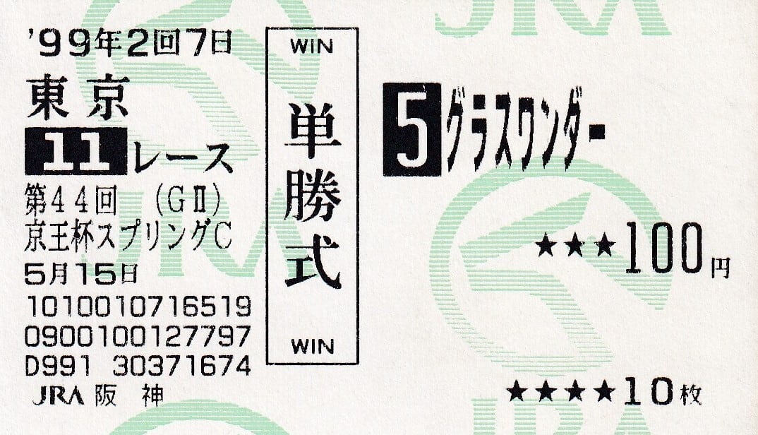 ※的中馬券 グラスワンダー:第44回 京王杯スプリングカップ「他場 阪神競馬場 当日購入馬券」単勝100円