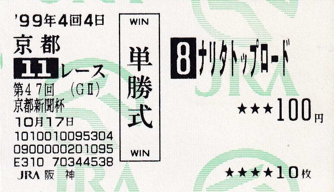 ※ハズレ馬券 ナリタトップロード:第47回 京都新聞杯「他場 阪神競馬場 当日購入馬券」単勝100円