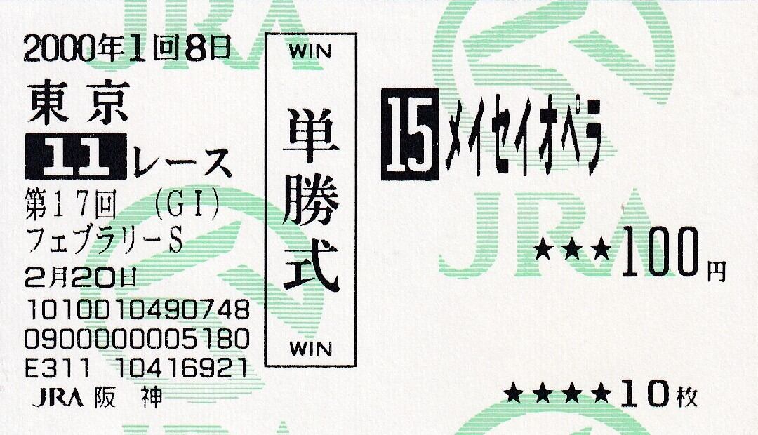 ※ハズレ馬券 メイセイオペラ:第17回 フェブラリーステークス「他場 阪神競馬場 当日購入馬券」単勝100円