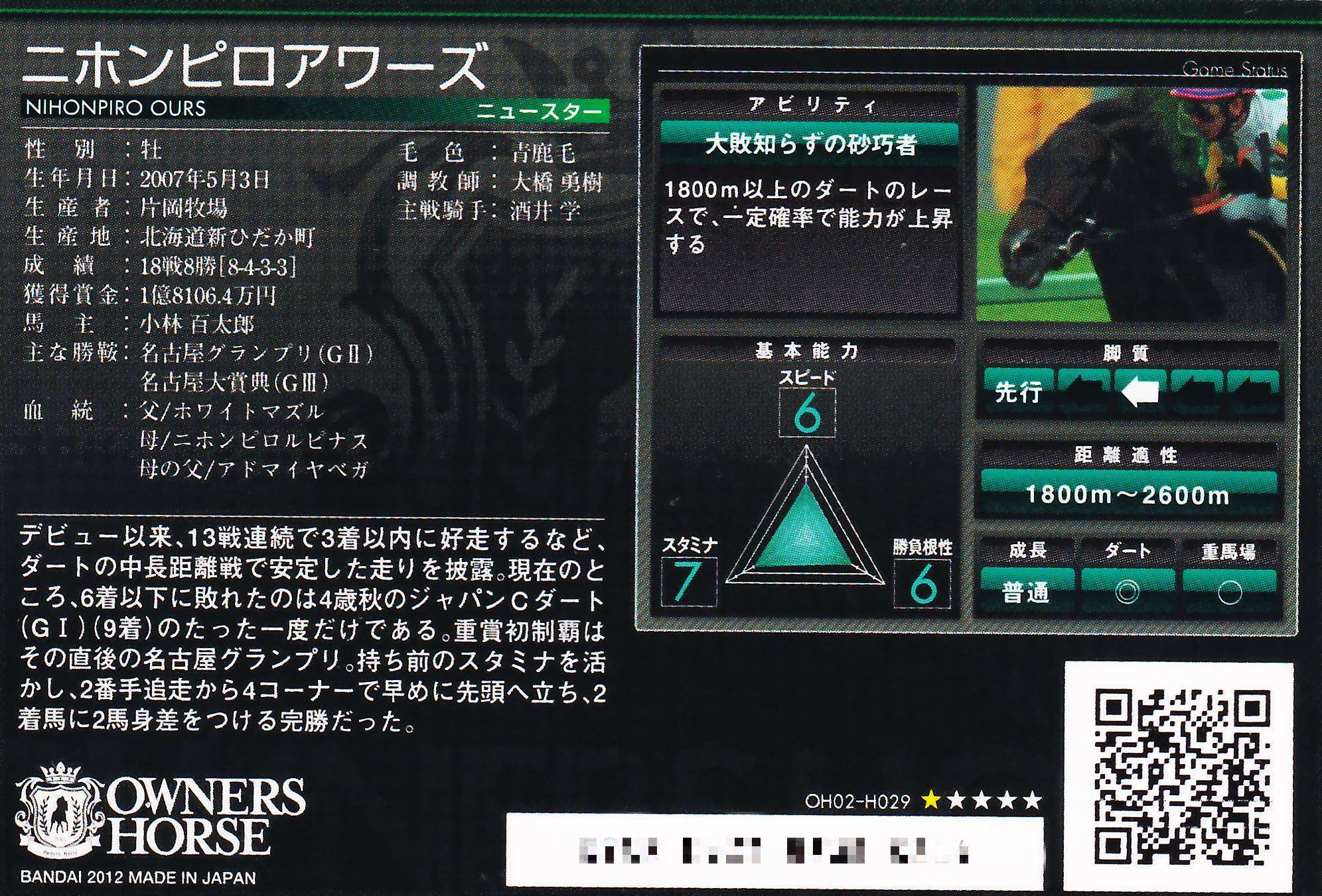 二ホンピロアワーズ「大敗知らずの砂巧者」OH02-H029