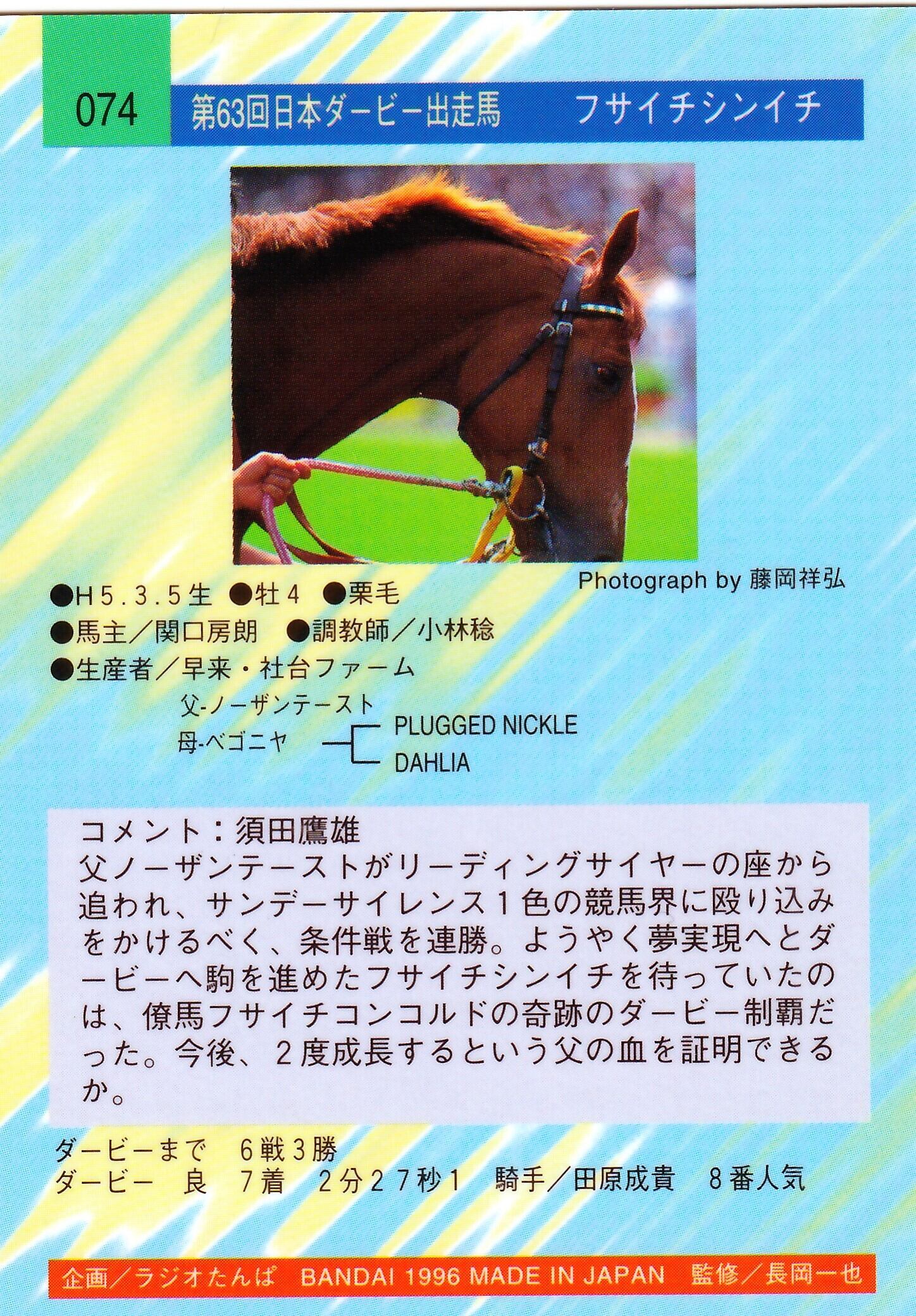 フサイチシンイチ:第63回日本ダービー出走馬「サラブレッドカード 96年上半期版」No.074