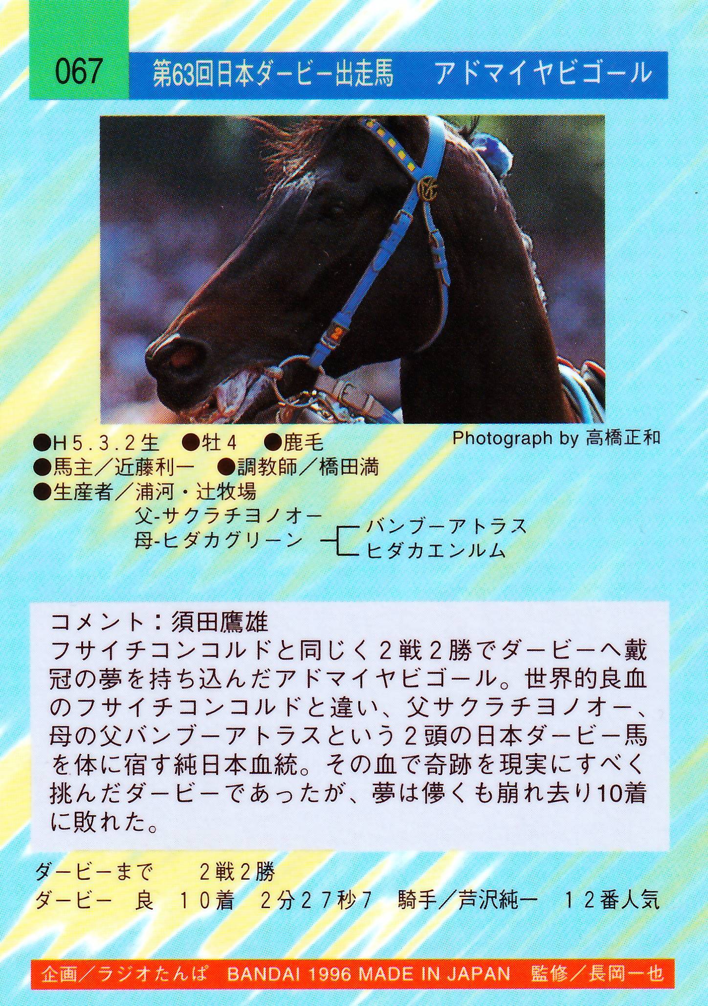アドマイヤビゴール「サラブレッドカード 96年上半期版」No.067