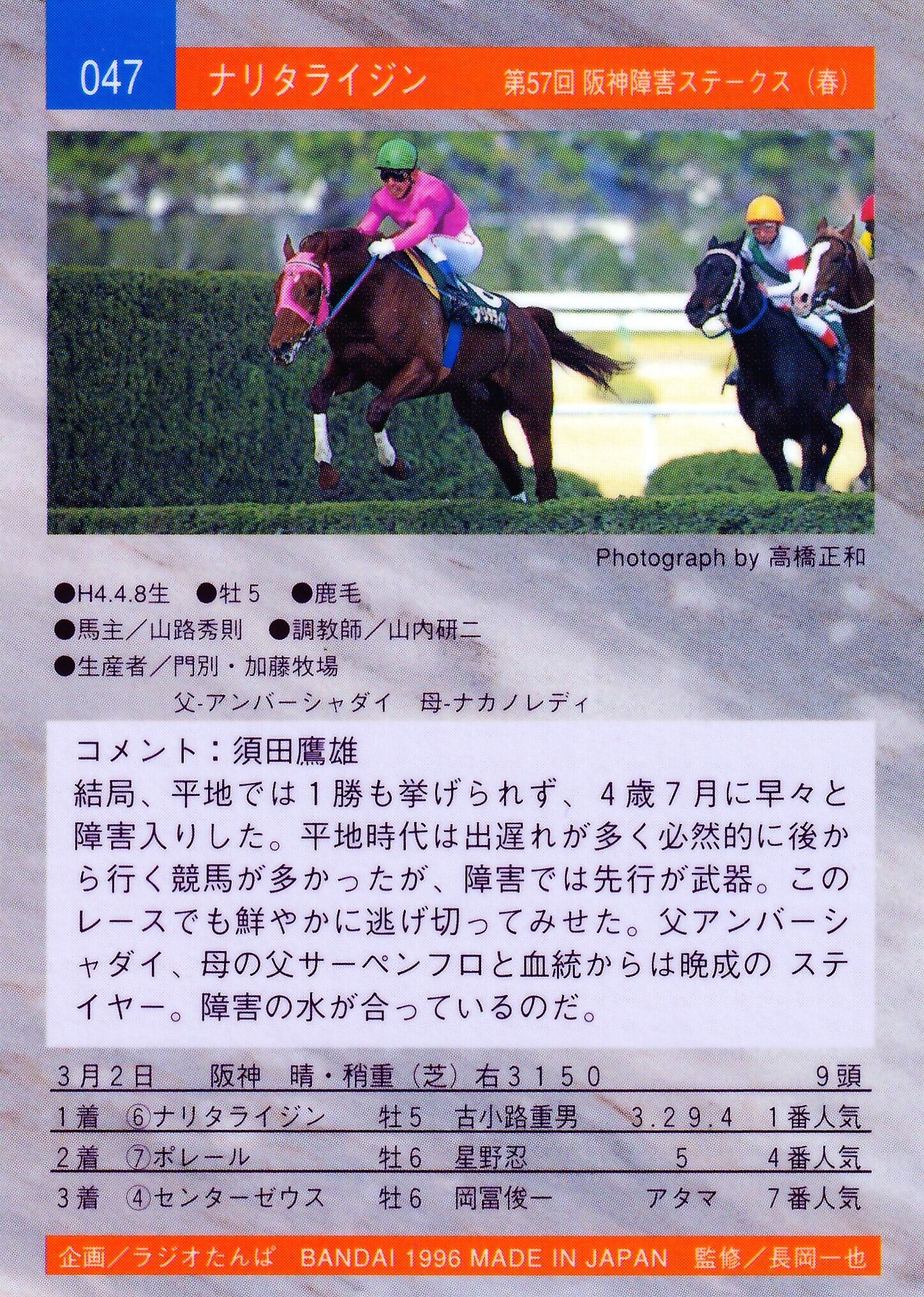 ナリタライジン:第57回阪神障害ステークス(春)「サラブレッドカード 96年上半期版」No.047