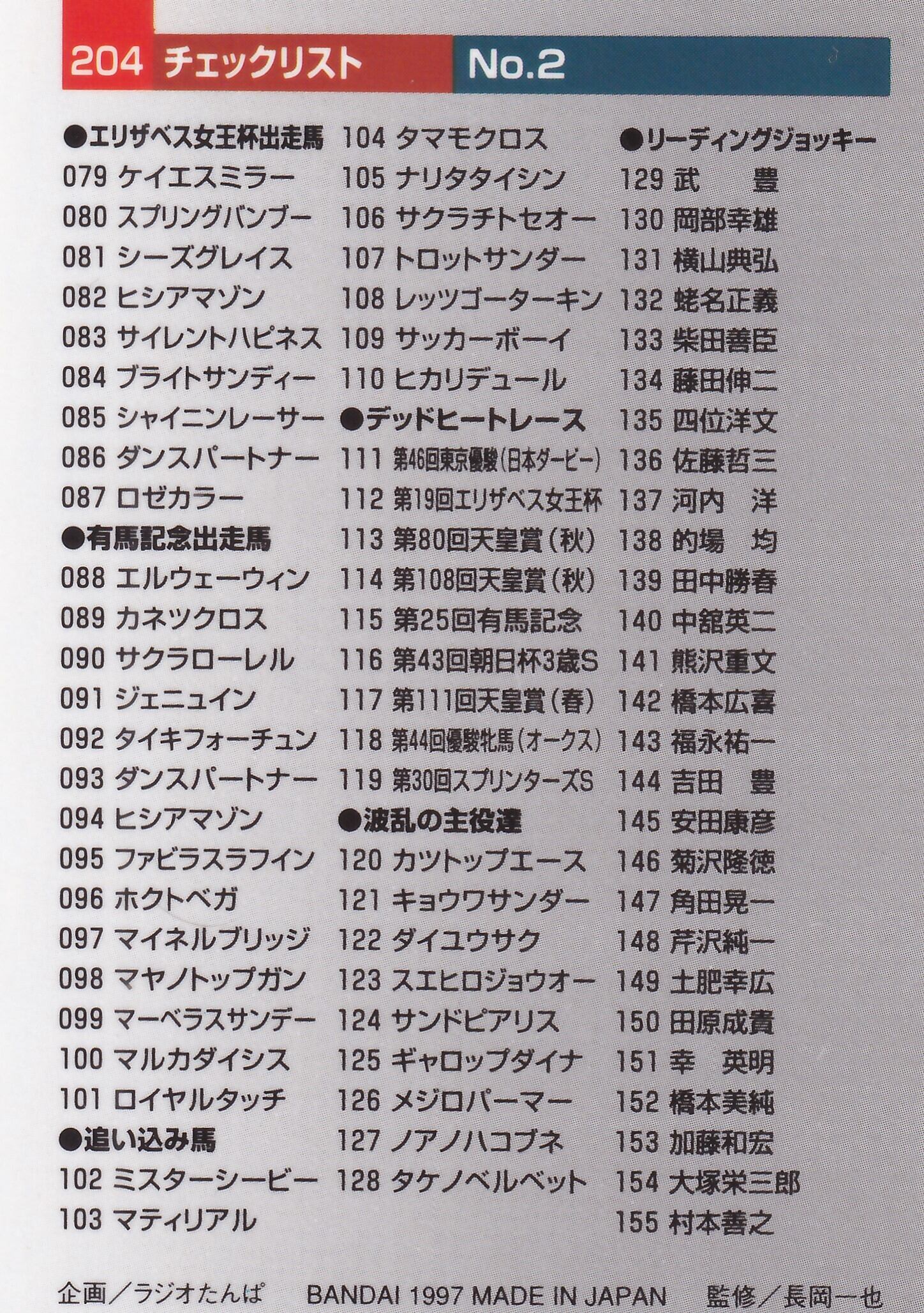 チェックリストNo.2「サラブレッドカード 96年下半期版」No.204