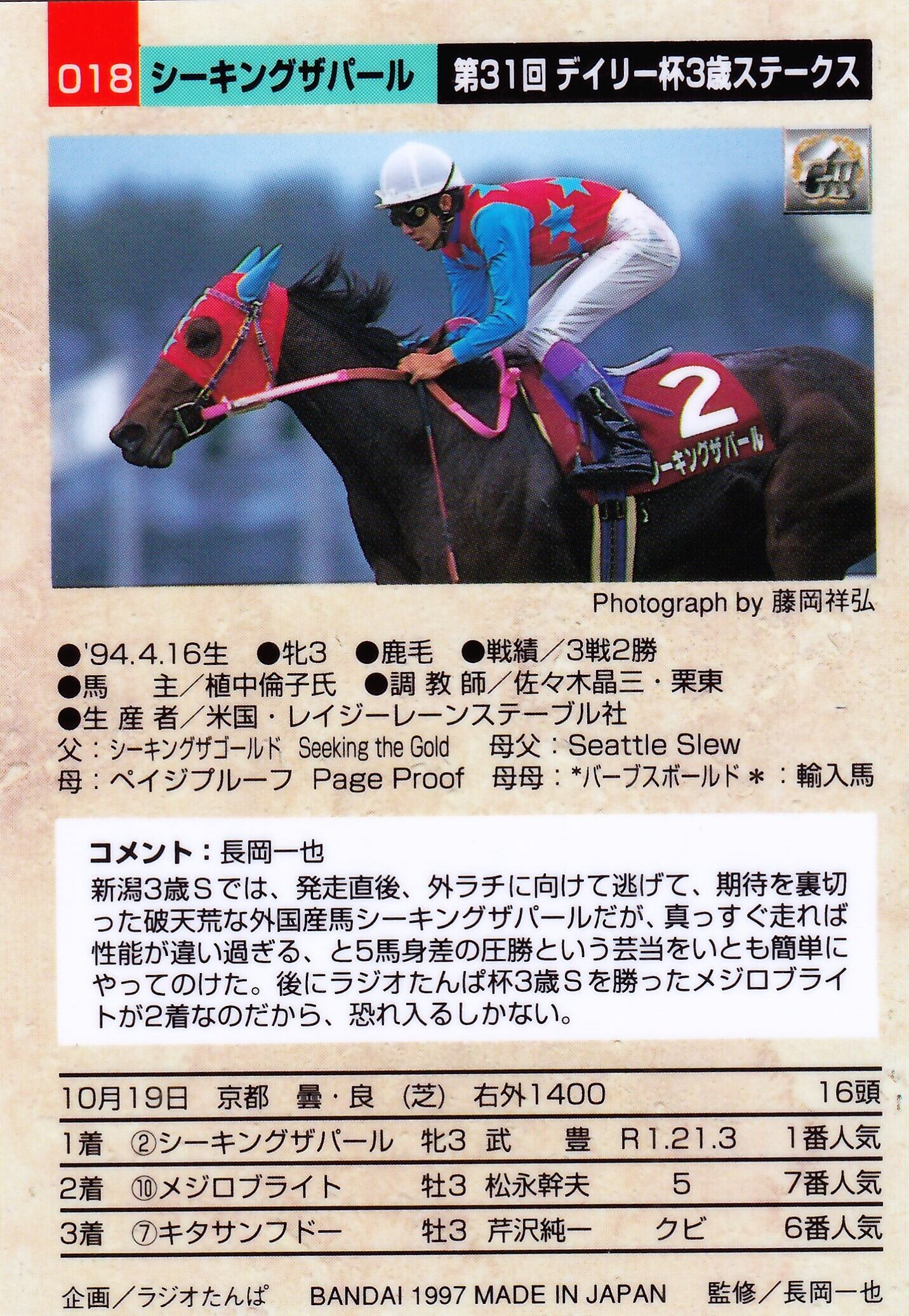 シーキングザパール:第31回 デイリー杯3歳ステークス「サラブレッドカード 96年下半期版」No.018
