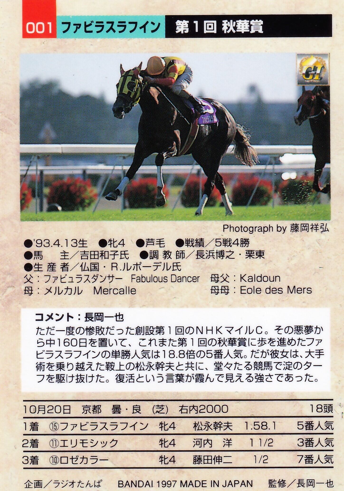 ファビラスラフイン:第1回 秋華賞「サラブレッドカード 96年下半期版」No.001