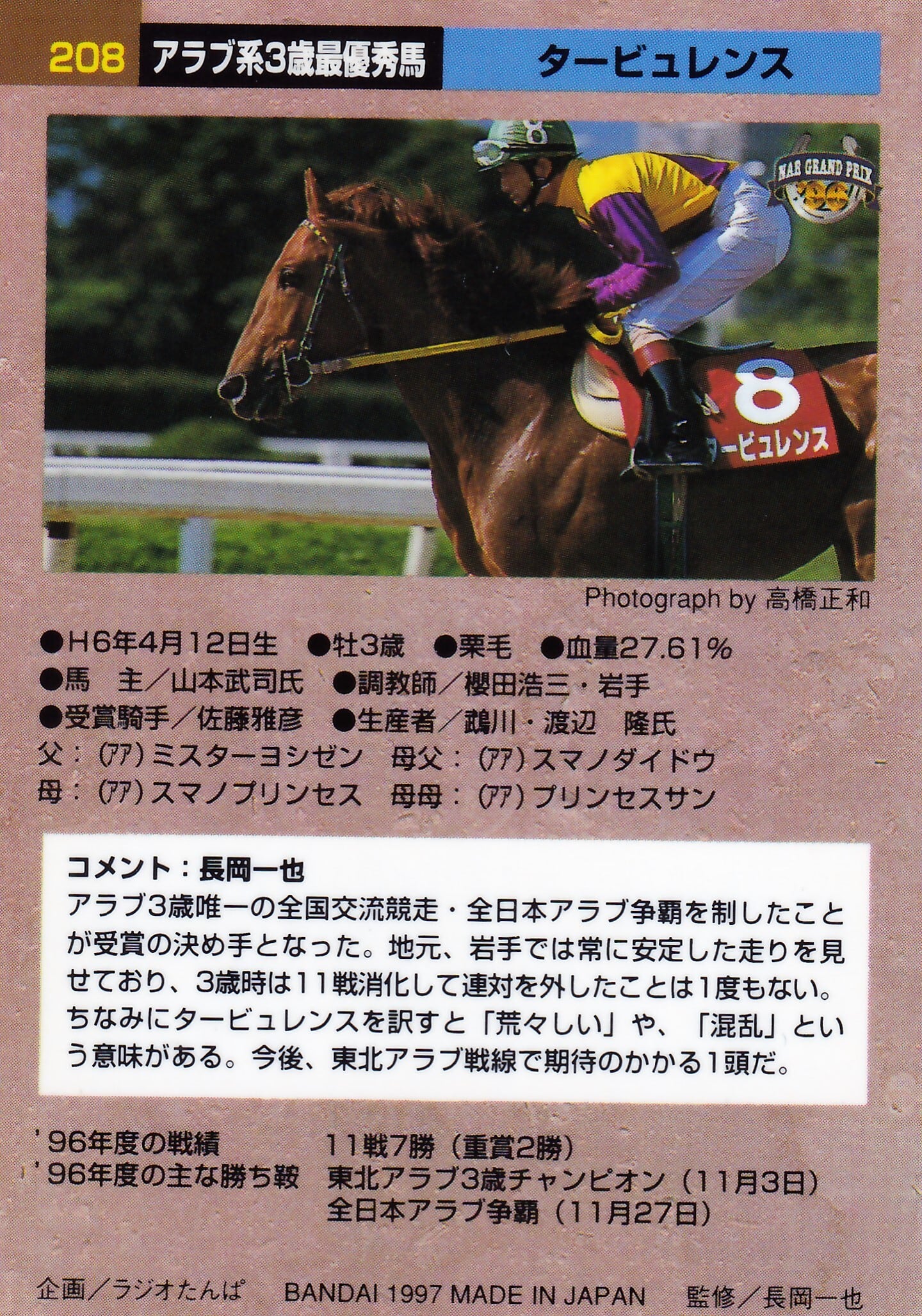 タービュレンス:アラブ系3歳最優秀馬「サラブレッドカード 97年上半期版」No.208