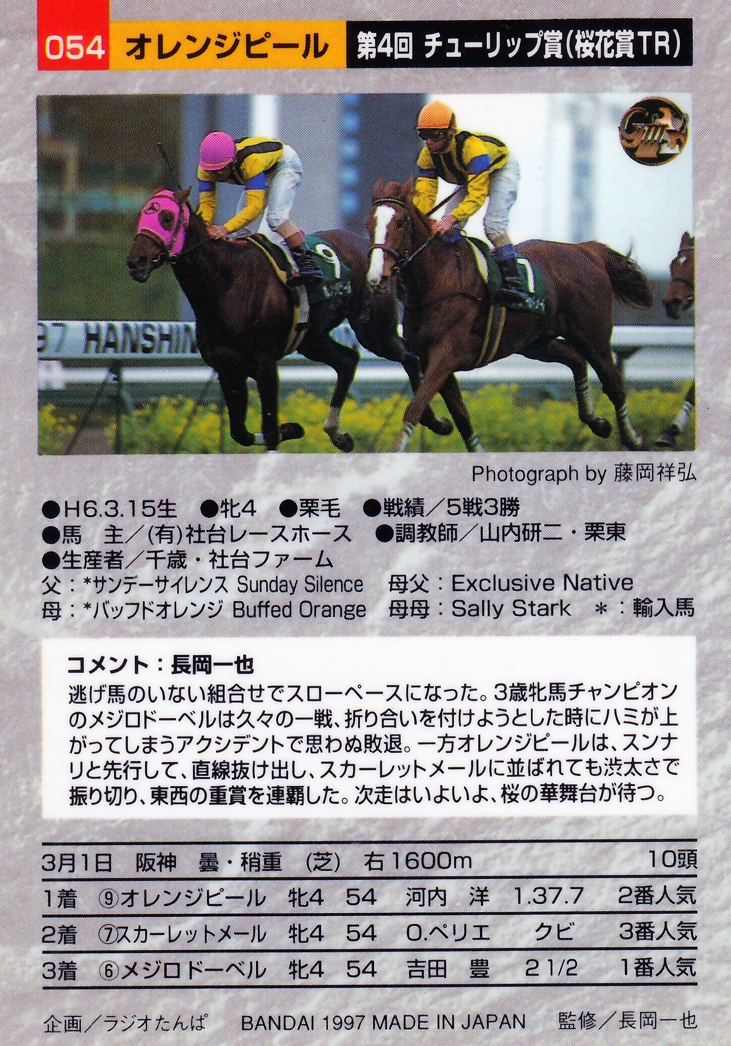オレンジピール:第4回 チューリップ賞「サラブレッドカード 97年上半期版」No.054