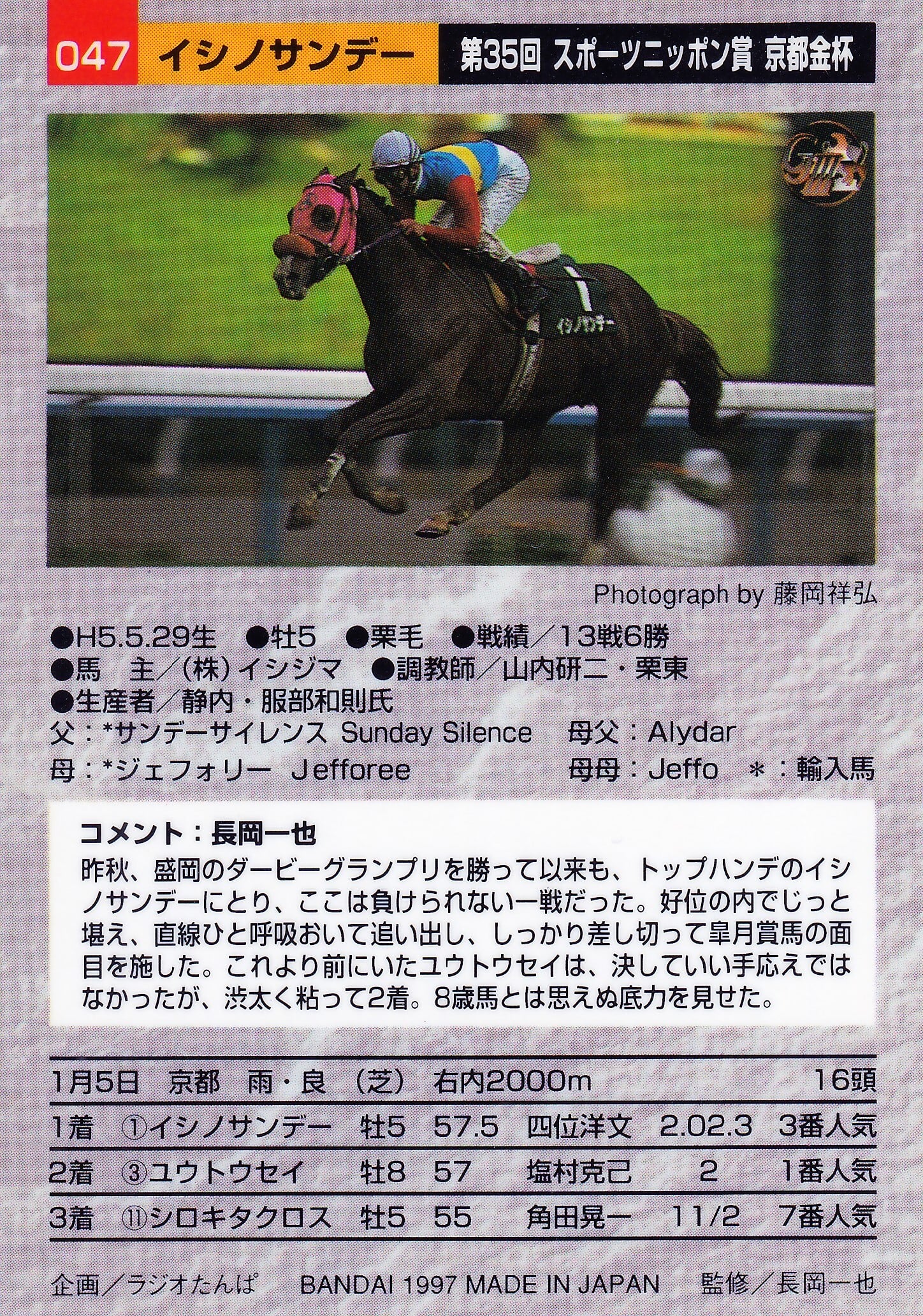 イシノサンデー:第35回 スポーツニッポン賞京都金杯「サラブレッドカード 97年上半期版」No.047