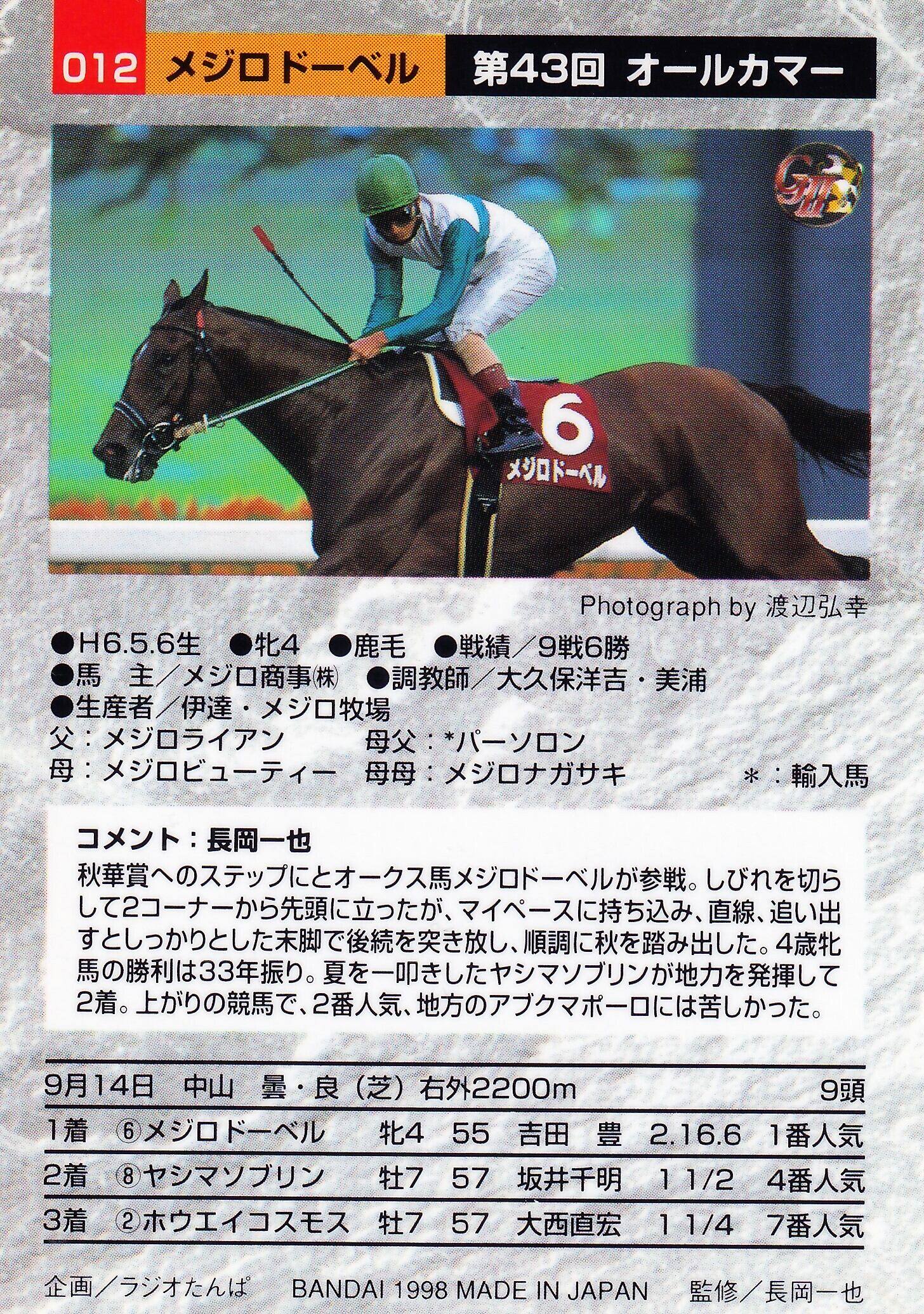メジロドーベル:第43回 オールカマー「サラブレッドカード 97年下半期版」No.012