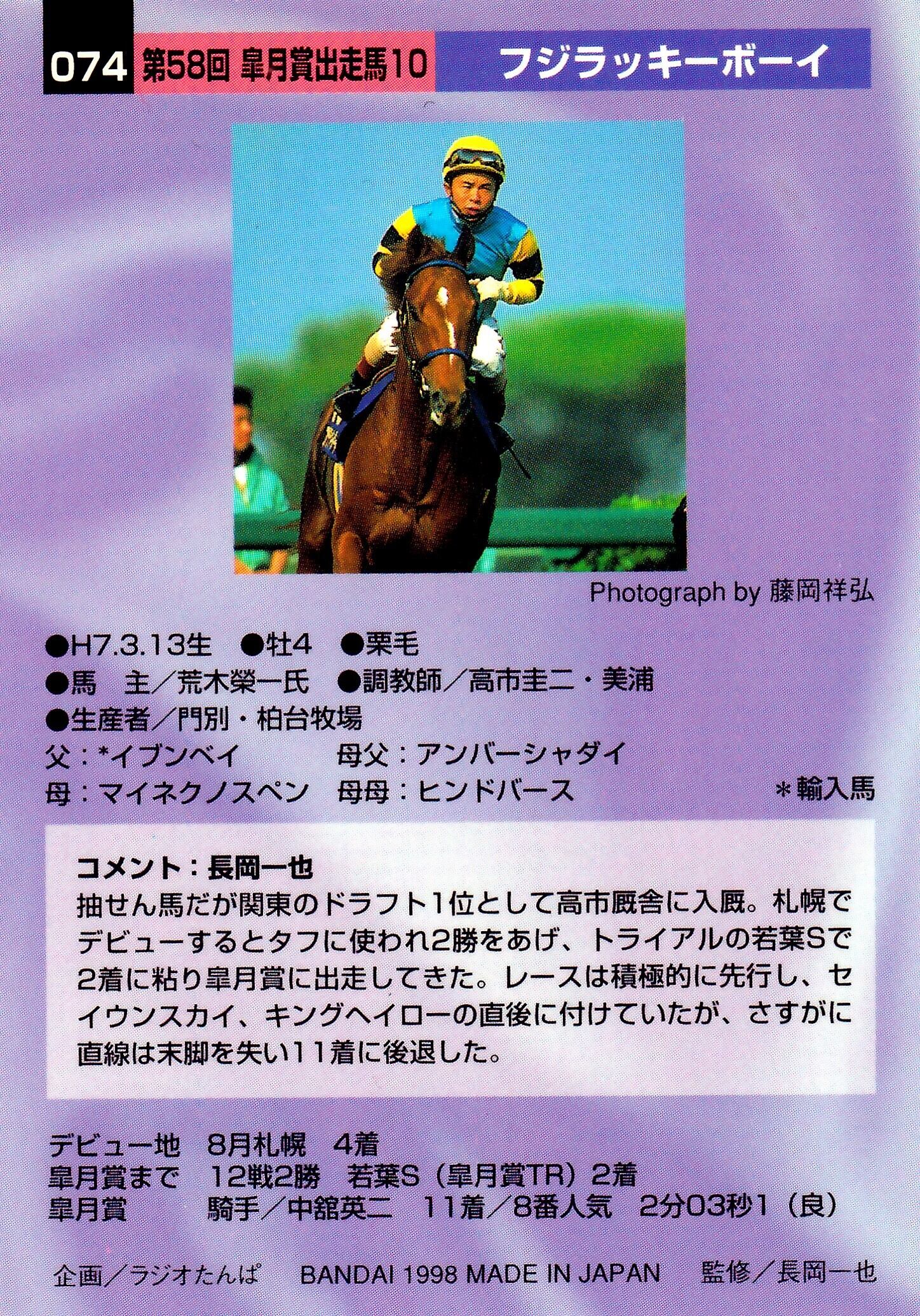 フジラッキーボーイ:第58回 皐月賞出走馬「サラブレッドカード 98年上半期版」No.074