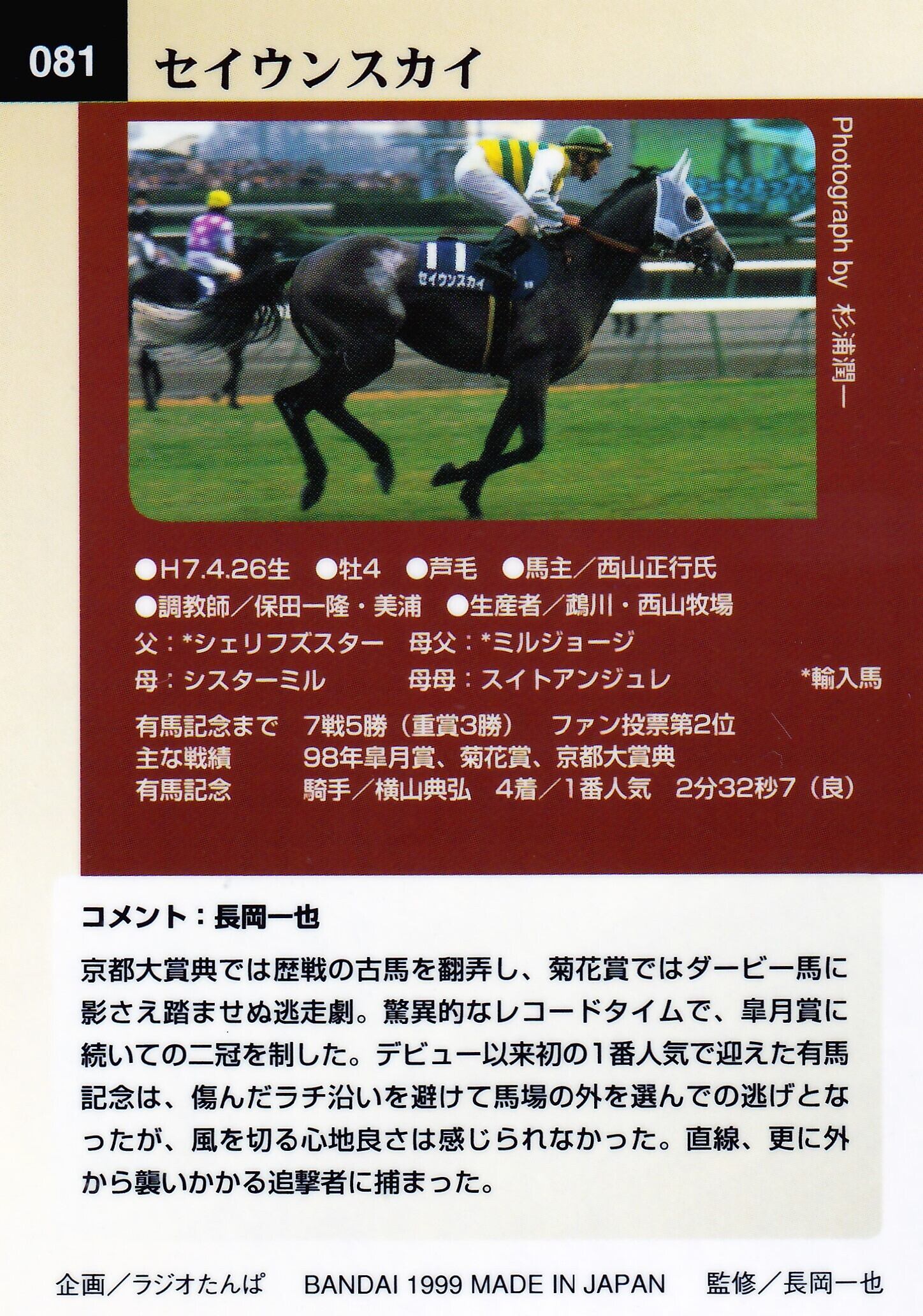 セイウンスカイ:第43回 有馬記念出走馬「サラブレッドカード 98年下半期」No.081
