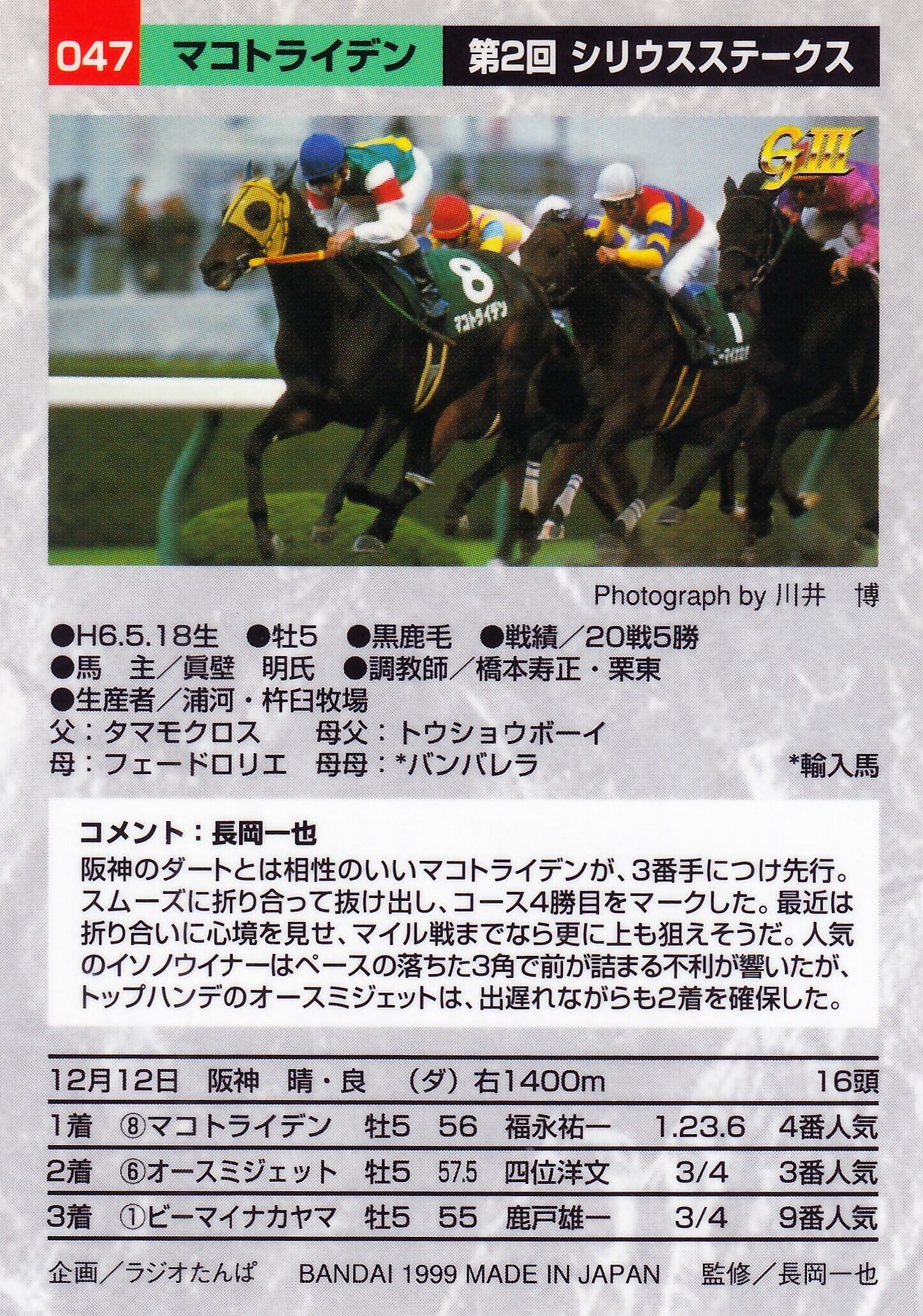 マコトライデン:第2回 シリウスステークス「サラブレッドカード 98年下半期」No.047