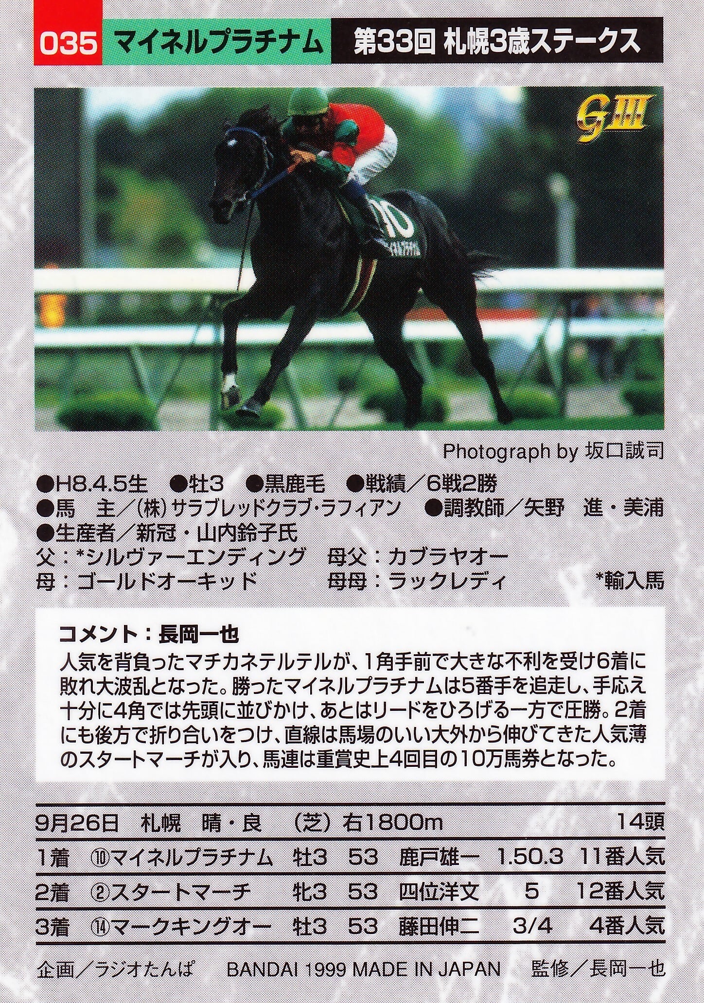 マイネルプラチナム:第33回 札幌3歳ステークス「サラブレッドカード 98年下半期」No.035