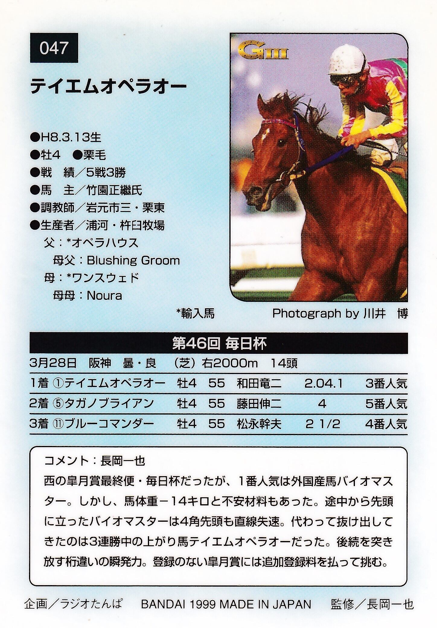 テイエムオペラオー:第46回 毎日杯「サラブレッドカード 99年上半期」No.047