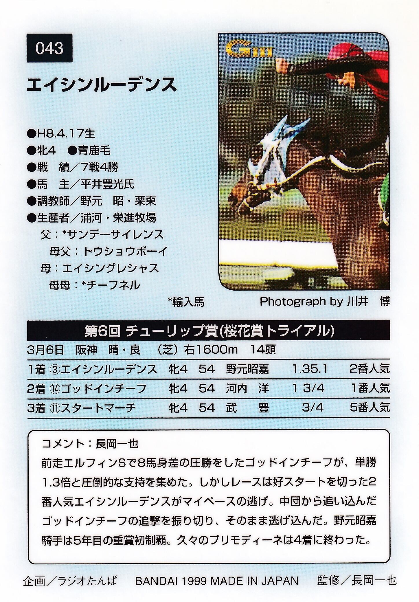 エイシンルーデンス:第6回 チューリップ賞「サラブレッドカード 99年上半期」No.043
