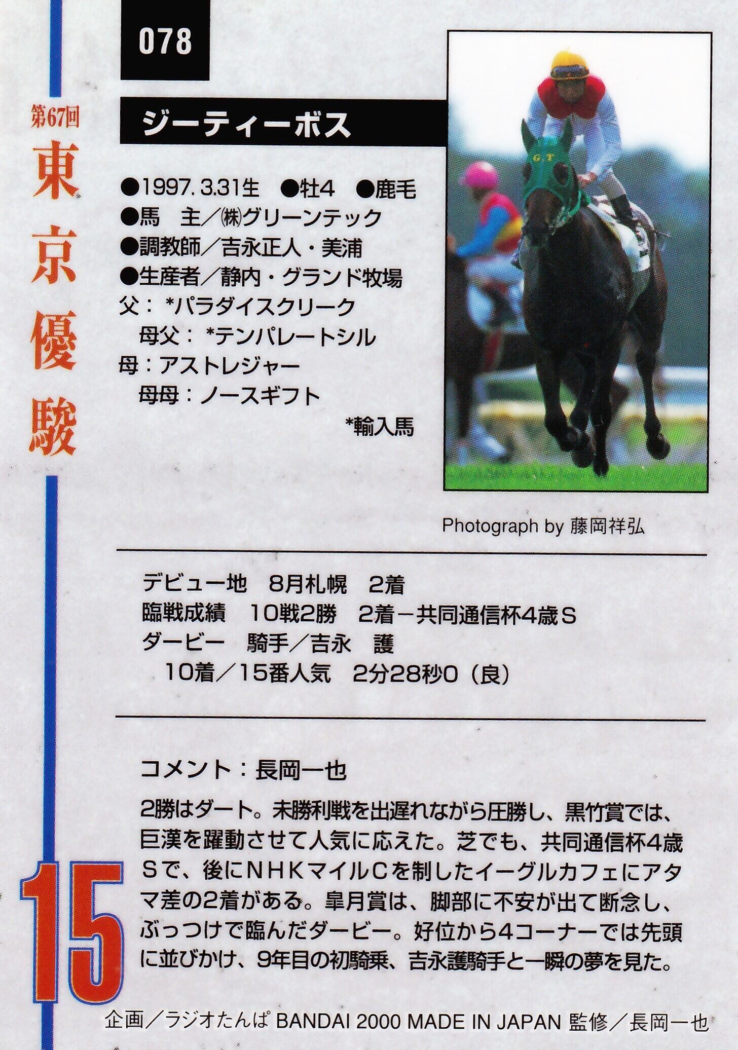 ジーティーボス:第67回 東京優駿(日本ダービー)出走馬「サラブレッドカード 00年上半期」No.078