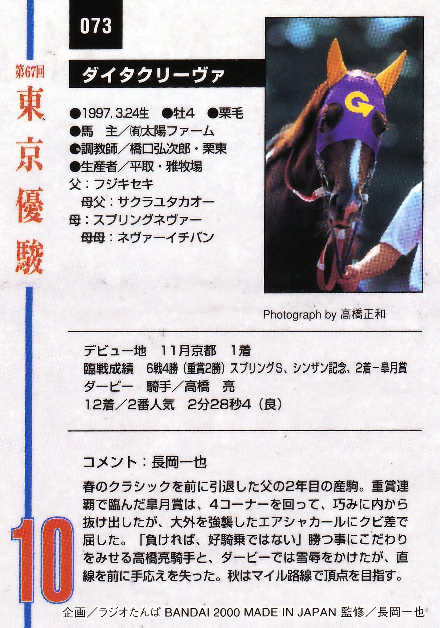 ダイタクリーヴァ:第67回 東京優駿(日本ダービー)出走馬「サラブレッドカード 00年上半期」No.073