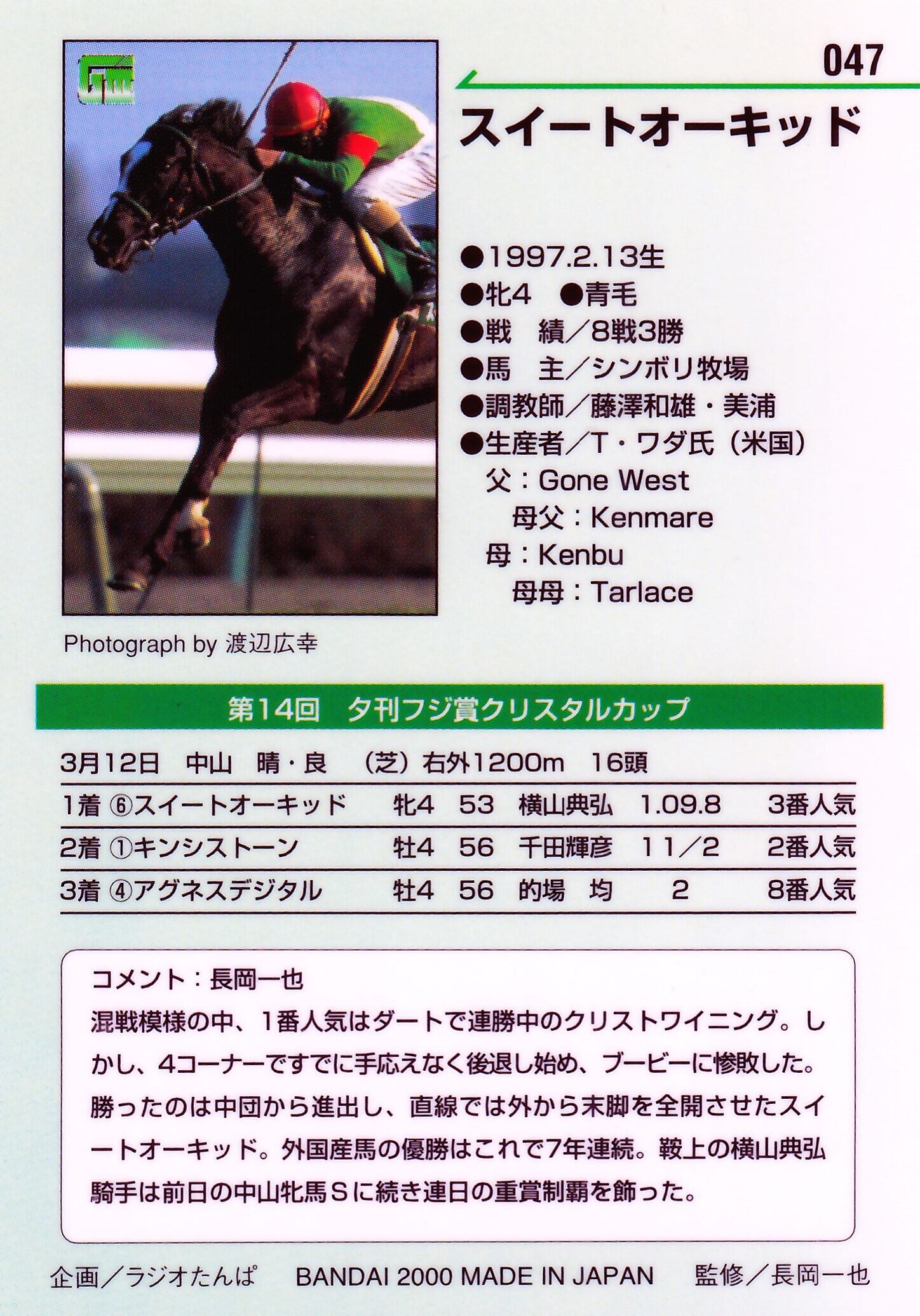 スイートオーキッド:第14回 クリスタルカップ「サラブレッドカード 00年上半期」No.047