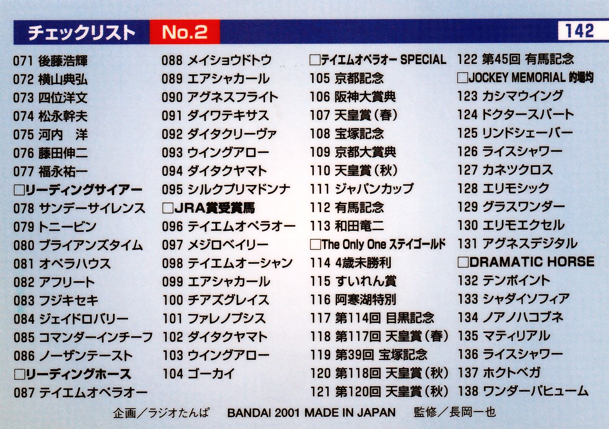 チェックリストNo.2「サラブレッドカード 00年下半期」No.142