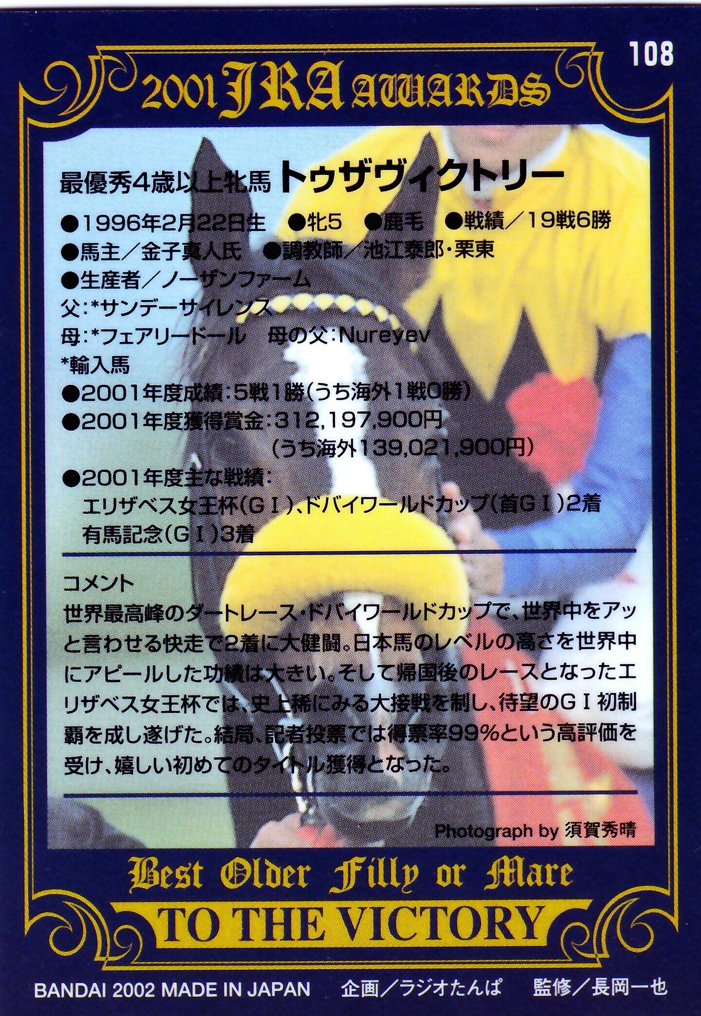 トゥザヴィクトリー:最優秀4歳以上牝馬「サラブレッドカード 01年下半期」No.108