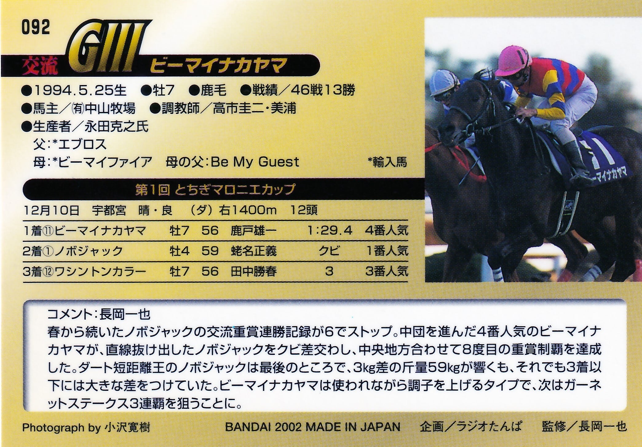 ビーマイナカヤマ:第1回 とちぎマロニエカップ「サラブレッドカード 01年下半期」No.092