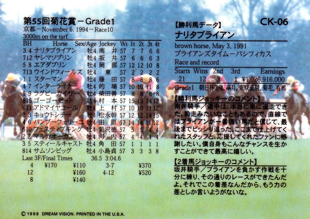 第55回 菊花賞:ナリタブライアン(銀文字ノーマル)「The Victory 1999」CK-06