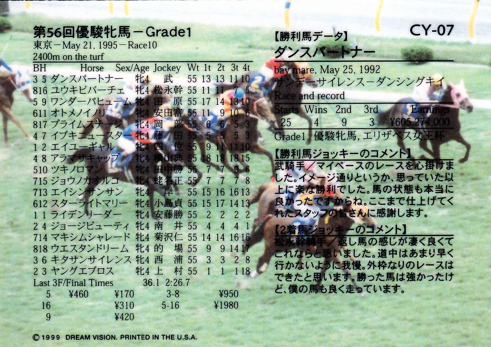 第56回 優駿牝馬:ダンスパートナー(銀文字ノーマル)「The Victory 1999」CY-07