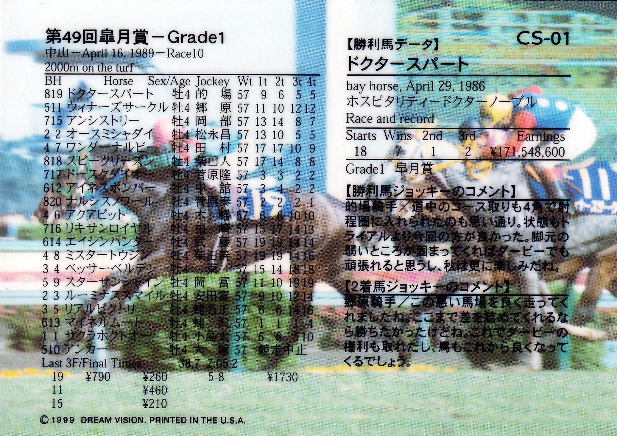 第49回 皐月賞:ドクタースパート(銀文字ノーマル)「The Victory 1999」CS-01