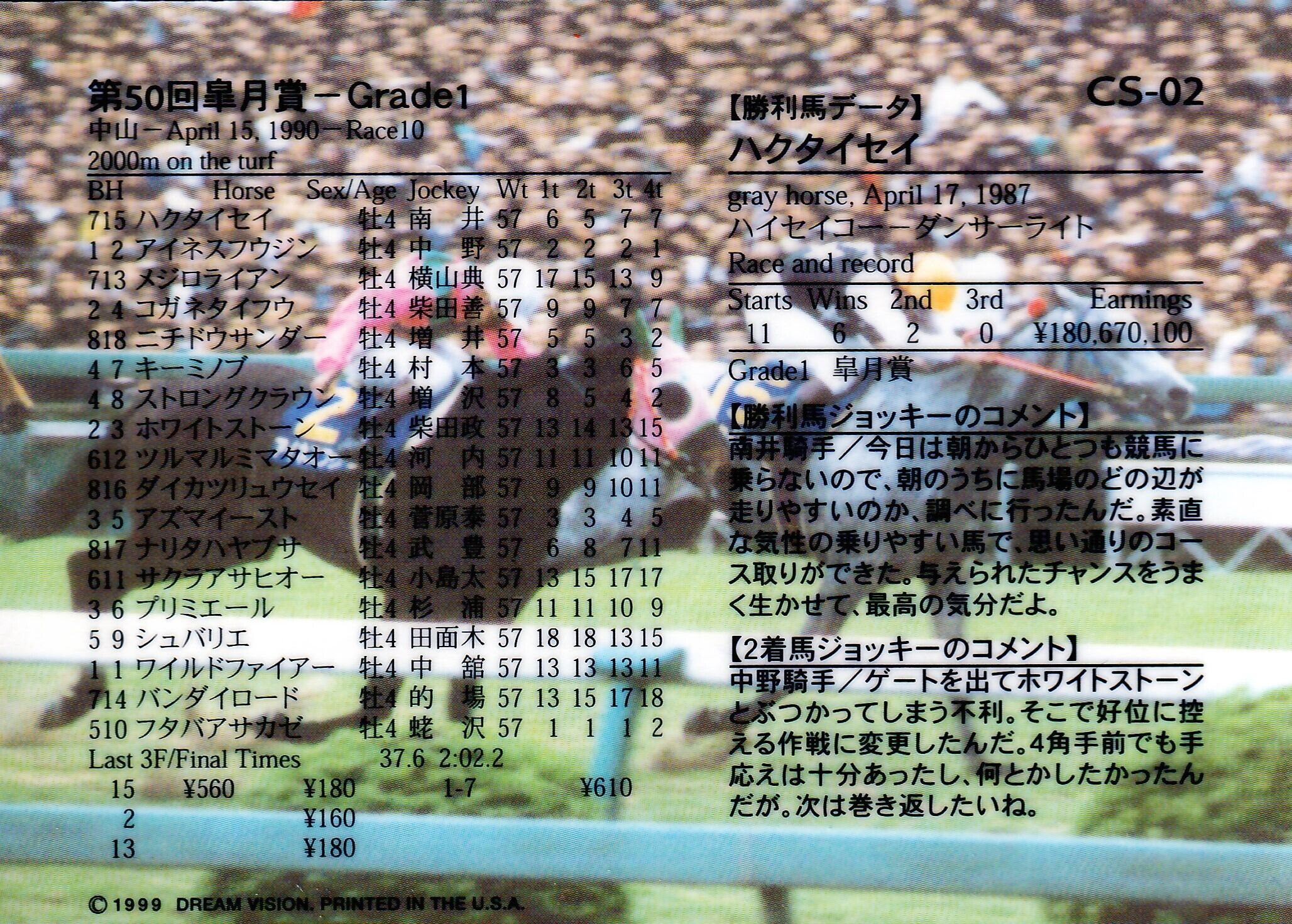 第50回 皐月賞:ハクタイセイ(金文字ノーマル)「The Victory 1999」CS-02