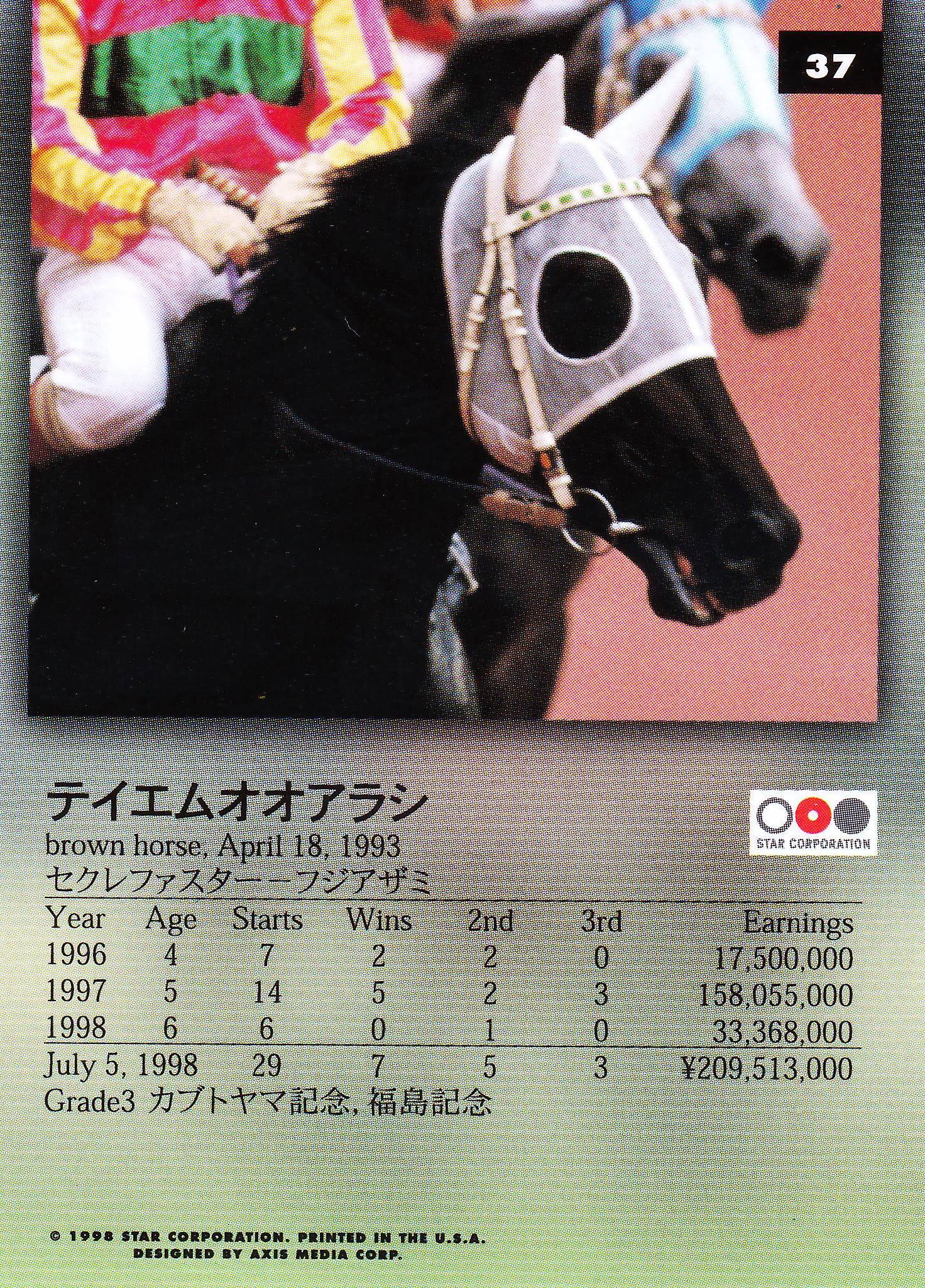 テイエムオオアラシ(金文字)「The Classic 1998 Road To The Winner」No.37