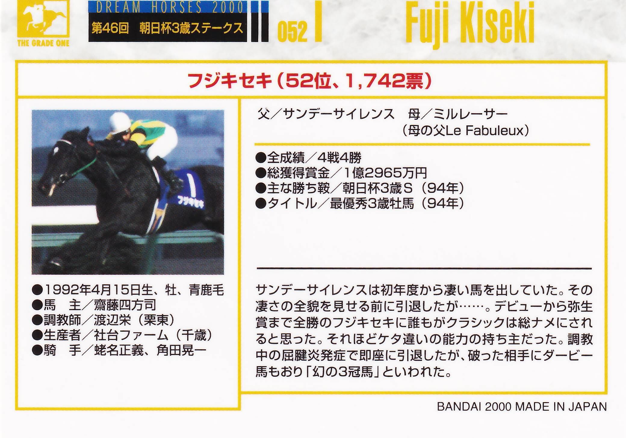 フジキセキ:第46回 朝日杯3歳ステークス(金文字仕様)「THE GRADE ONE 20世紀の名馬」52位
