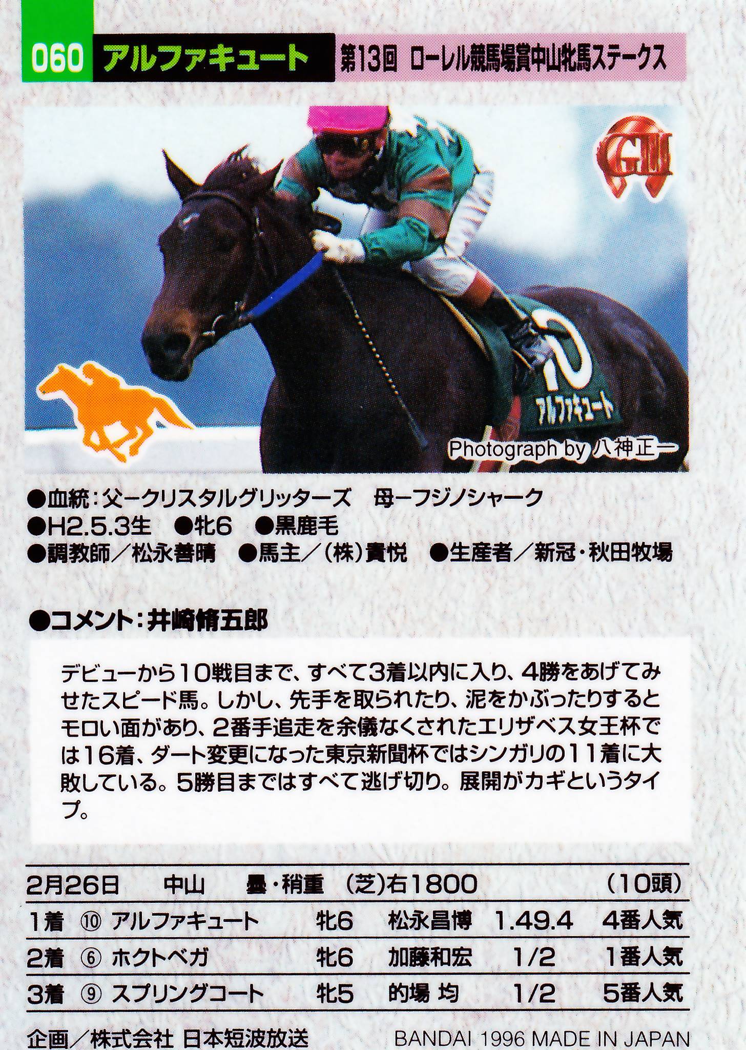 アルファキュート:第13回 中山牝馬ステークス「サラブレッドカード 95年版」No.060