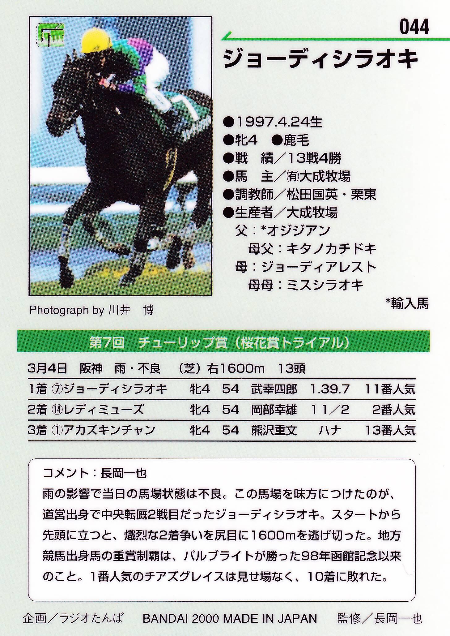 (武幸四郎金箔サイン付)ジョーディシラオキ:第7回 チューリップ賞「サラブレッドカード 00年上半期」No.044